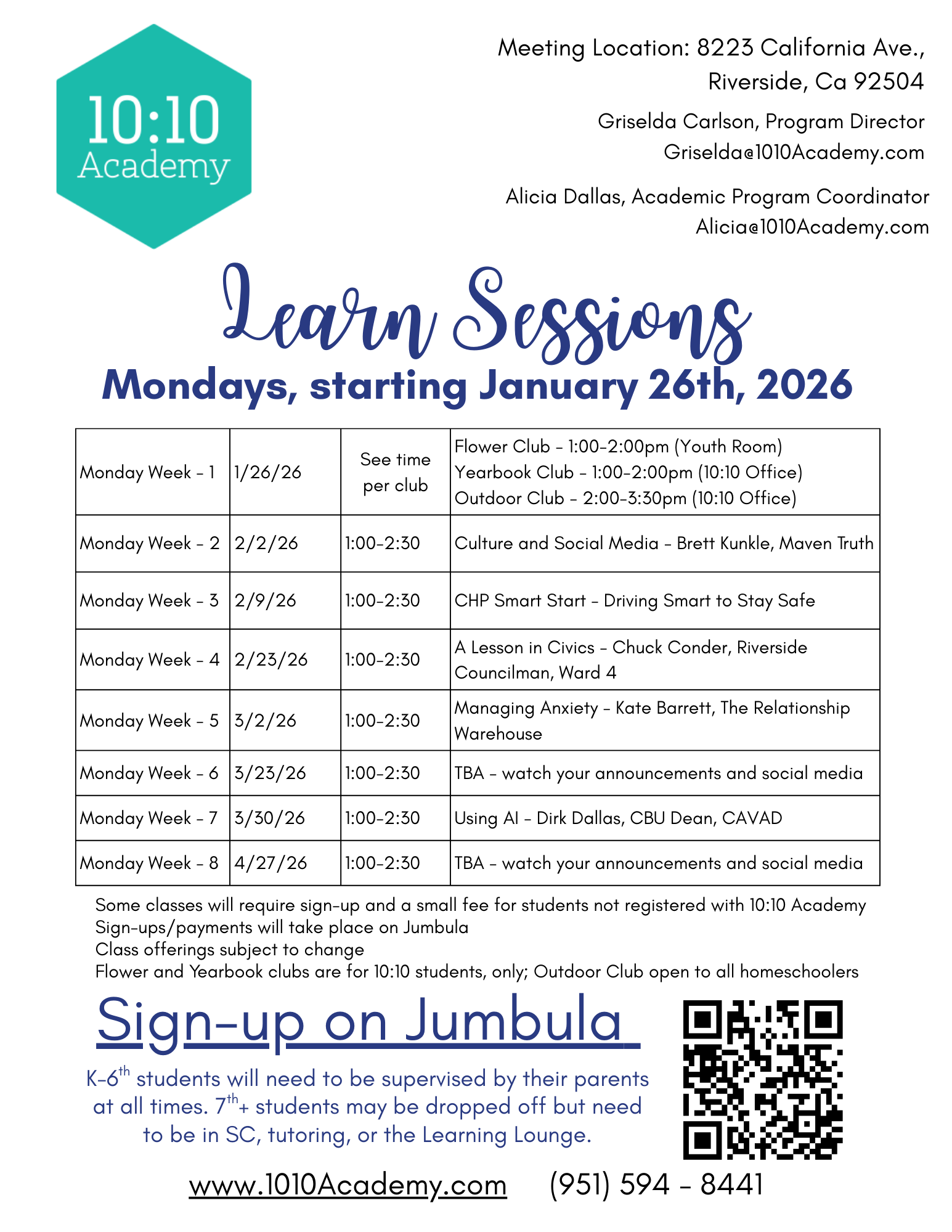 K-6th students will need to be supervised by their parents at all times. 7th+ students may be dropped off but need to be in SC, tutoring, or the Learning Lounge.