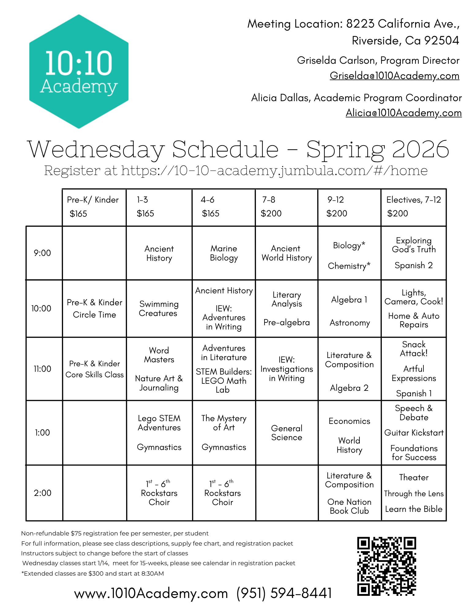 - Please read the Parent/Student Handbook before registering.